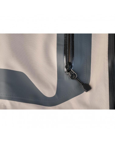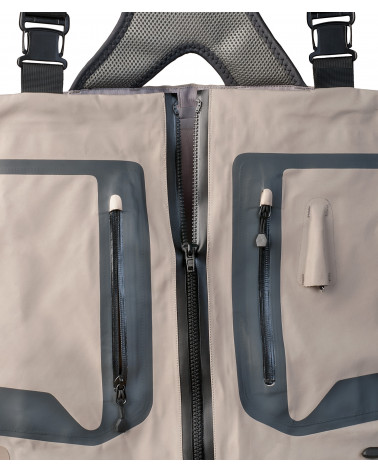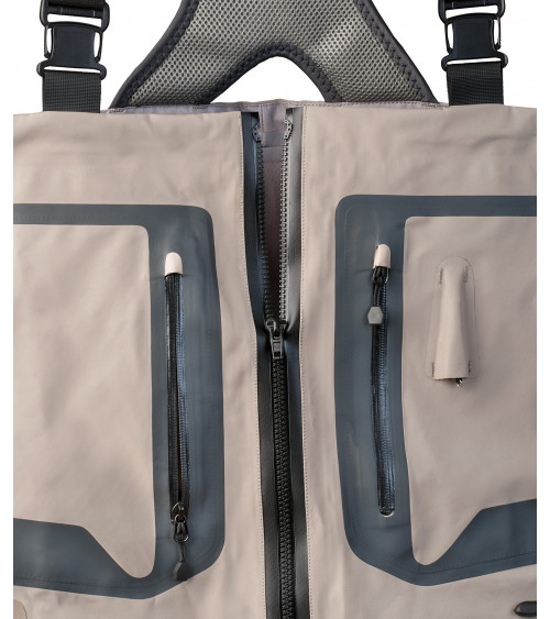 Gran cremallera frontal YKK Aquaseal totalmente impermeable que permite acceder a nuestro pantalon sin quitarse el chaleco.