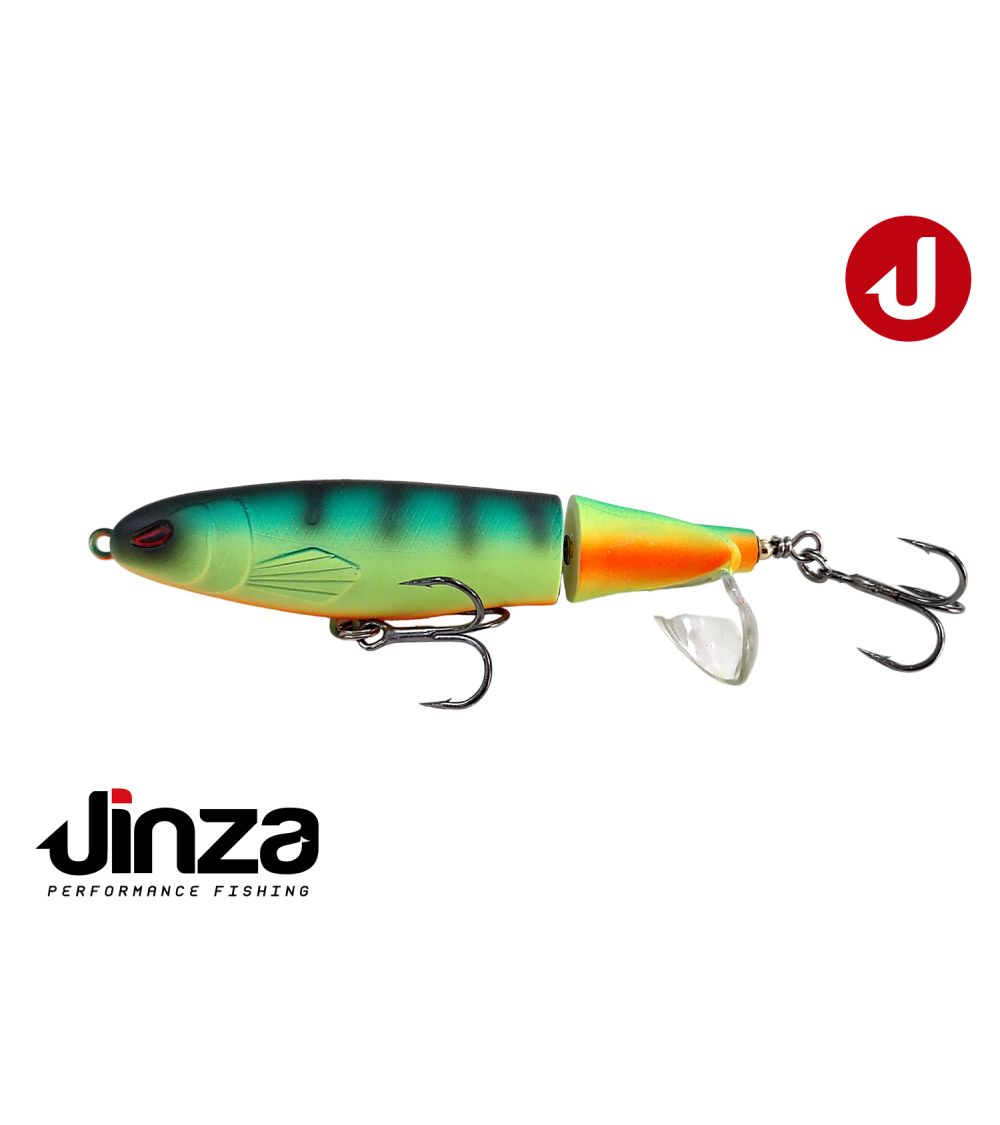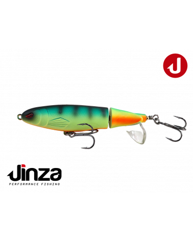 Cuerpo dividido en dos secciones, en su parte trasera dispone de una cola giratoria que chapotea ruidosamente en la superficie del agua, creando un sonido irresistible para los depredadores.