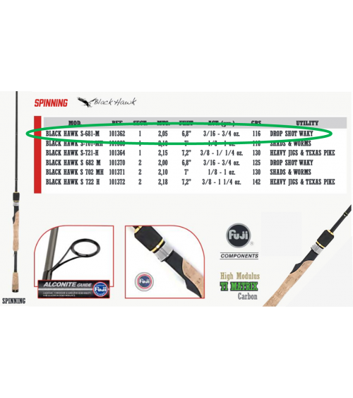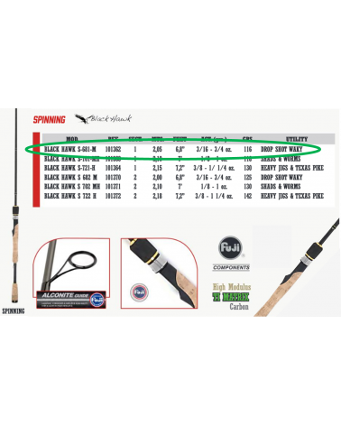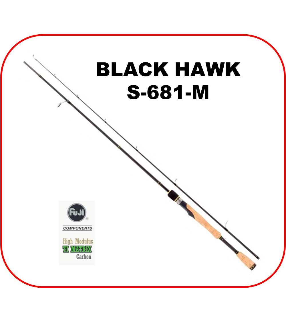 CAÑA JINZA SPINNING BLACK HAWK 6'8" ACCION MEDIUM DE 1 TRAMO.