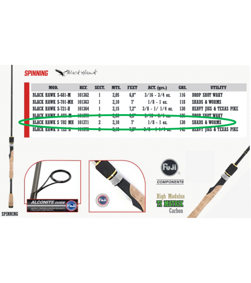 CAÑA JINZA SPINNING BLACK HAWK 7'MH 2 TRAMOS